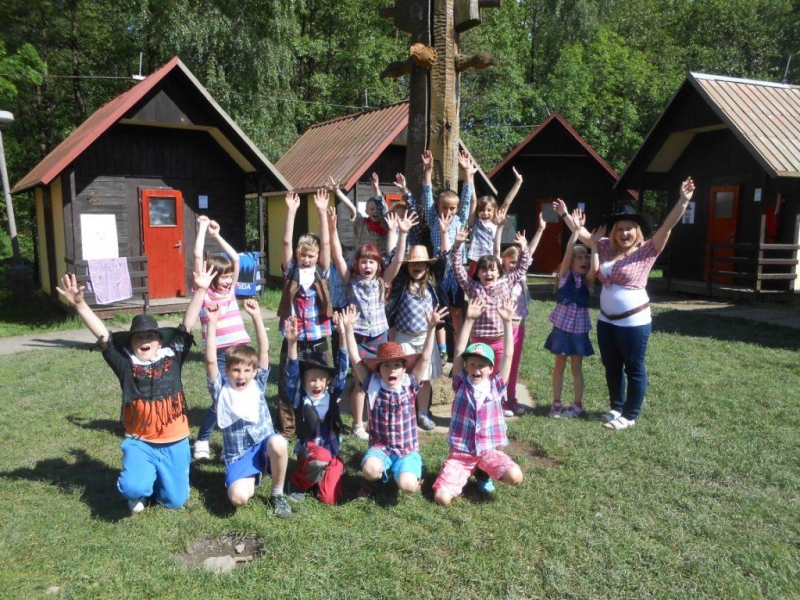 Včera dopoledne jsme měli výuku. Odpoledne jsme odstartovali Zlatý závod. Dostali jsme od šerifa koně a uháníme s nimi, co to dá! Už máme i barevné šátky, vlajku, píseň a portrét vedoucího kovboje. Večer jsme se vyřádili na parádní diskotéce.